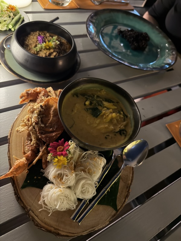 Alles ist lecker, lediglich das Krabbencurry war etwas schärfer (und ist somit großteils bei mir gelandet).