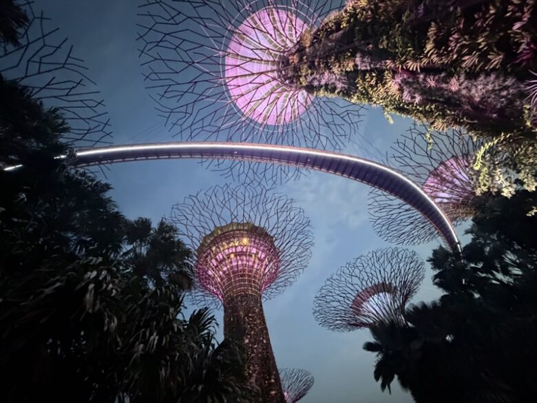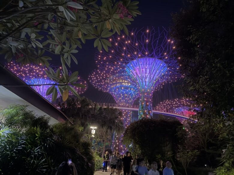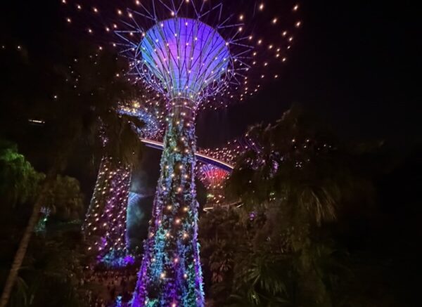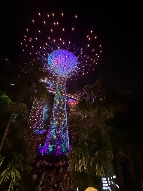 Heute Abend haben wir uns die Lichtershows angesehen. Zuerst sind wir zu Gardens by the Bay gegangen und haben uns die über 10 Minuten Lightshow gegeben.