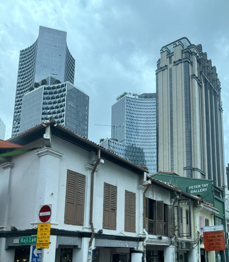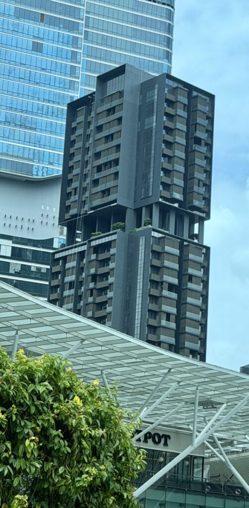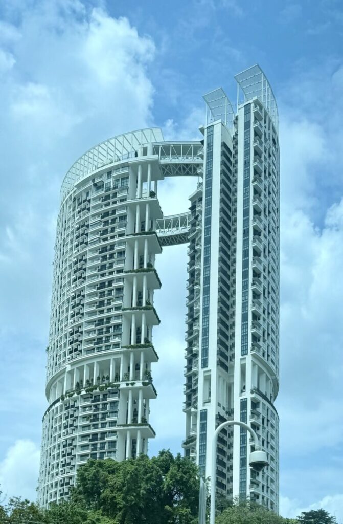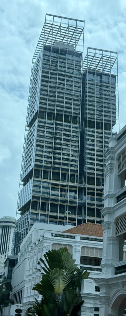 Die Architektur ist sehr interessant, da Singapur zu den grünsten Städten der Welt gehört. Viele Häuser haben Pflanzen integriert.